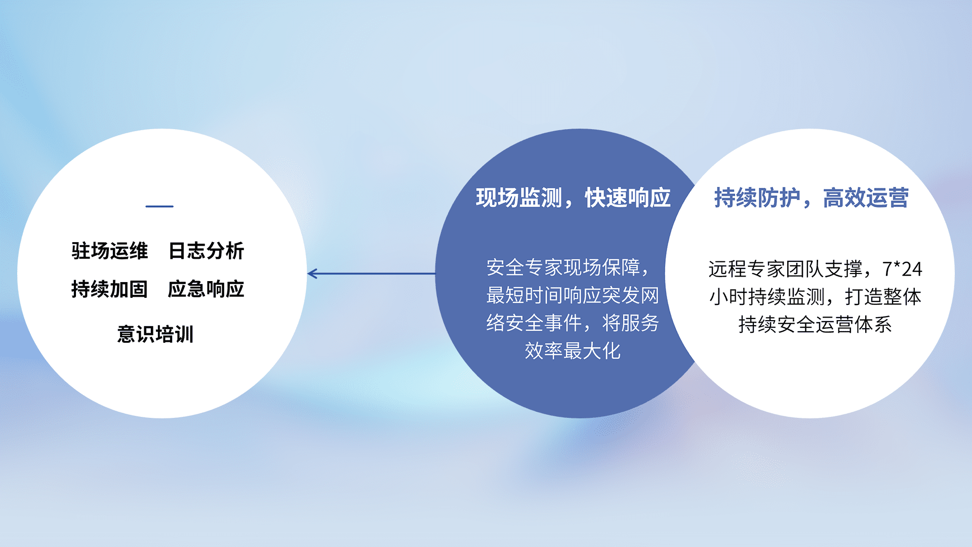 7X24小时持续监测安全事件,保持安全策略有效性,降低资产脆弱性风险,,,,精准拦截黑客攻击,,,,减少被黑客利用的机会,,,,第一时间遏制,,,,降低损失。。。